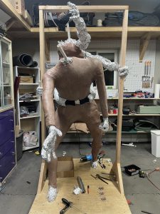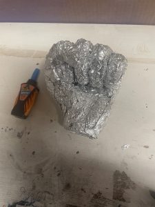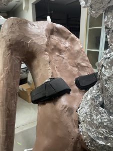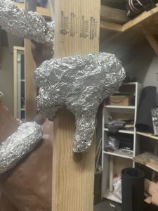 Oh yeah, I also put tin foil on the black part to get ready for the arms that are going to be wrapped around Anthony. I have been kind of sporadic (scattered if you will) in the parts that I work on. I do multiple little things at once that aren’t the same form of tedious so I don’t go crazy doing the same thing over and over.