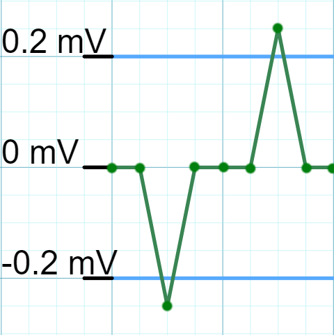 Figure 1A. – Pictured is the old algorithm version of filtering the same spike as in 1B. You can see only the values that are actually above and below the threshold voltages are preserved, and those intermediate values of the waveform are set to zero. This is clearly an inaccurate form for analysis.