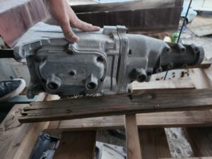 The replacement started with fixing up the new transmission I bought, however I left this task to my mentor and only assisted when asked to, as transmission assembly is very difficult. After that was done all that was left to do was put the new parts into place starting with a small copper ring that went into the back of the engine port that made sure the transmission stayed seated in the engine. Afterwards I had to take the new flywheel and attach it to the back of  the engine. Following this I had to place the clutch and pressure plate, in that order, onto the flywheel in the correct direction before bolting them down, and lastly I had to attach the new bellhousing which is what holds the transmission to the engine this only required 4 bolts in the corners of the bellhousing and attaches directly to the engine block. Before mounting the transmission, I had to make sure that all the parts were aligned and used a clutch alignment tool. The next part was tricky as it required me lifting the 70lb transmission over my head and inserting it into the bellhousing enough where the spindle was still accessible because I needed to slide the hydraulic throw-out bearing onto the end. The last and most excruciating step was aligning the end of the transmission with the engine port as you can barely see anything and the port is as wide as your index finger. However with much trial and error I was able to slide the transmission into the engine and then all I had to do was bolt down the transmission to the bellhousing, and attach it to a custom crossmember which supports the transmission from the bottom preventing it from falling.