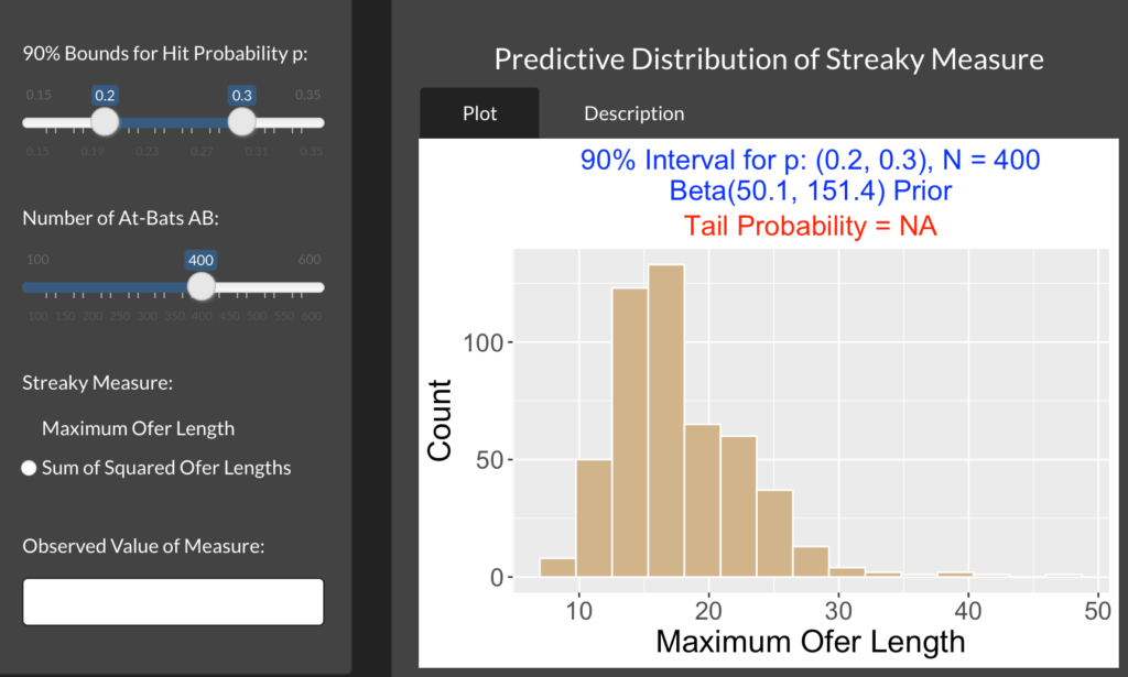 The second part of my work this week centered on the streakiness of hitters and their odds of slumping. Baseball is known for its streaky nature, with players sometimes experiencing hot streaks followed by cold spells. Traditionally, these streaks are just seen as random fluctuations in a player’s performance. However, Bayesian methods allow us to directly quantify the likelihood of a slump occurring based on a player’s previous performance and the variability inherent in the game.