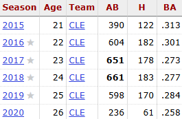 One useful example in the context of baseball can be found using Francisco Lindor as an example. Early on in Lindor’s career, his batting performance was consistently solid, with his .313 rookie batting average placing him at second for AL Rookie of the Year voting and consistently above .270 batting average earning him 4 consecutive All Star selections from 2016 to 2019. After the 2020 season, Lindor was set to become a free-agent in the upcoming season, so 2020 would be crucial to netting a large contract in the upcoming offseason. However, that year, his performance seemed to falter, with his batting average dropping to .258 in a shortened 2020 season. This raised concerns with Cleveland’s front office, who wondered if he was already regressing this early on in his career. Using Bayesian updating, we can determine if this season’s performance was statistically significant or not.
