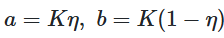 This gives us a new posterior η of 0.256 and K of 665 by using the prior equations. With this new update to our distributions, we can now chart our new prior distribution and our new posterior distribution.