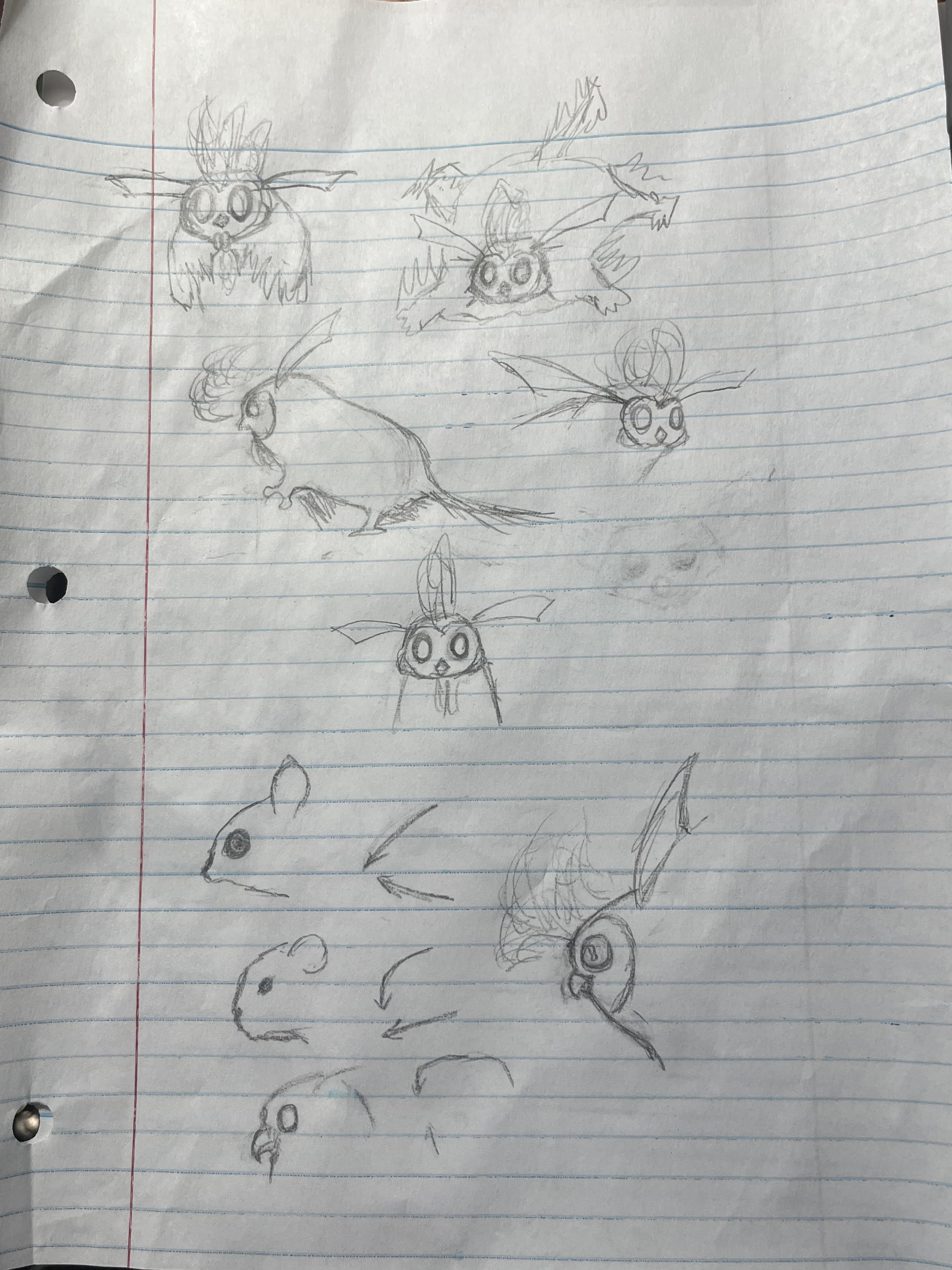 This week I spent most of my time coming up with sketches and inspiration. I decided to design a creature that would end up as one of the main characters the player can play as in combat.