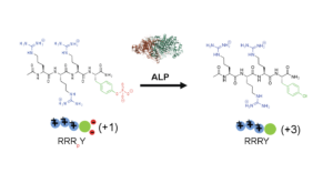 In this post, I’m kind of going to backtrack to one of the earlier steps. I mentioned earlier about testing whether the charge switching peptides are triggered by the enzyme. I forgot to talk about designing the structure of the peptide itself. That’s what the topic of this blog post is going to be. So, I designed the peptide structure using adobe illustrator. Essentially, the polyarginine peptide is basically a cell penetrating peptide that is also a peptide, meaning it consists of multiple peptides linked together. And a peptide consists of two or more amino acids linked together. In this case, the polyarginine is going to consist of several arginine groups, amine groups, and hydrogen bonds. I obtained the basic structure of the polyarginine and then I manipulated its structural properties to account for the charge-switch. Essentially, the ALP enzyme triggers the charge switch through a process called dephosphorylation. This is basically where the phosphate group is removed from a molecule and this is what causes the charge to increase from +1 to +3. You’ll notice that the structure on the left is RRRpY which is basically arginine arginine arginine phosphotyrosine and the structure on the right is RRRY, which is basically arginine arginine arginine tyrosine. Hence, we see the phospho prefix missing from tyrosine due to the phosphate group removal. So why do we need to charge switch in the first place? Well, nucleic acids aren’t able to pierce through the cell membrane due to their strong negative charge and they need something to effectively neutralize their charge. That’s where my creation of these charge-switching peptides comes in. The +1 charge is way too small in terms of an electrostatic force to effectively neutralize the negative charge. But, the positive +3 charge is strong enough to neutralize the negative charge of DNA and that way the peptide-DNA complex can effectively go into the cell and treat the cancer tumor. And remember, ALP triggers the peptide so that it can bind to the DNA and thus, this method is successful like I mention in the other blog posts.