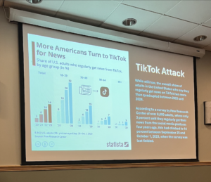 I started this week at Blue Skies of Texas for the AFIO monthly chapter meeting. Before the presentation, I was able to chat with a retired Navy couple who were both intelligence officers and had a combined 50+ years of service. They provided me with valuable insight in planning my future career, including talking to recruiters, learning languages, taking military aptitude tests, and navigating a military career as a female officer. After I talked with them, Mr. Franklin gave the monthly intelligence briefing surrounding the invasion of Ukraine. He first addressed something I’ve been focusing heavily on in the last few weeks – the relevance of social media in warfare. Specifically, he discussed statistics of the “TikTok Attack,” and how more and more American adults receive their news solely from TikTok. This “attack” is threatening as TikTok disseminates large amounts of disinformation compared to more academic news sources.
