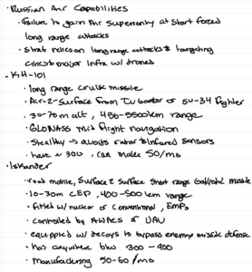 I found Mr. Franklin’s presentation incredibly helpful for my analysis this week. Not only did he set up the historical stage for the missile conflict occurring in Ukraine currently, but he also introduced me to new technology to be aware of, like the Shahed. Also, it was valuable to see how he gave an intelligence briefing and used OSINT to provide a multi-source intelligence solution with images, statistics, and historical stories before my presentation to AFIO in May!