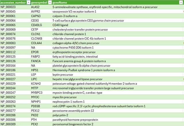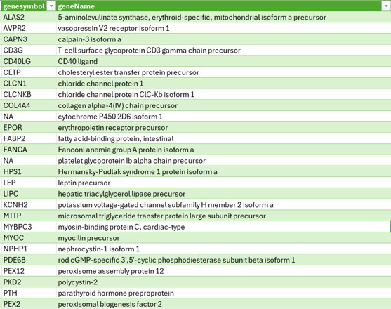 The first image displays the resulting table of differences when comparing the gene symbol and gene name between the two datasets.