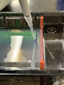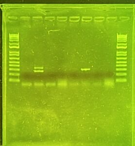 This week, I went into the lab on Thursday and got to help out on two projects. The first project was about the diets of large carnivores like pumas and bobcats. I got to run a gel electrophoresis to see if the PCR step worked out. My mentor wanted to know what size fragments had been amplified. We made a solution of 1% agarose and then poured it into the container and let it harden. We prepared the DNA by adding a dye which makes it easier to see under the UV light. We very carefully pipetted the DNA into each of the wells. The next step involved hooking the gel up to the machine that would run 100 volts through the gel. We let it run and then placed it on a UV light and took a picture of the gel. (Pictures at the end)