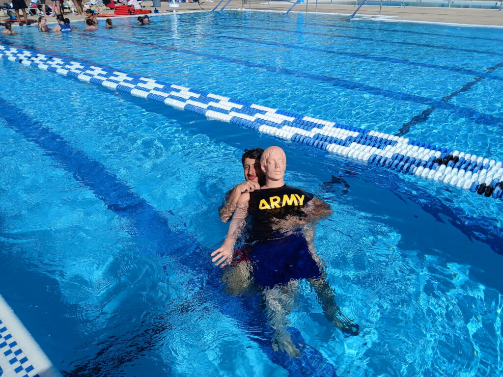 Then we went to our scanning drill and full scenario exams. Everyone would hop into the pool excluding one team of 4. In that team of 4 is Rescuer 1, who is responsible for initiating the EAP and beginning the rescue, Rescuer 2, who is responsible for taking coverage and clearing the pool, Rescuer 3, who is responsible for calling 911 and leading them to the scene, and Rescuer 4, who is responsible for assisting Rescuer 1 in extracting the victim and completing the rescue. Everyone else would hop into the pool and be given instructions on what to do. They may be told to go have fun and play, and then 2 people may begin fighting and one gets knocked out from a punch.