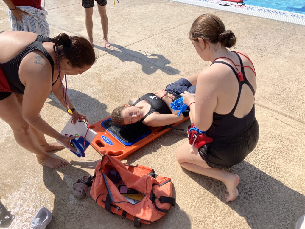 And to finish off the day, we did our spinal extractions. Once again in 3-man teams, everyone had to have a turn removing a conscious spinal victim from the water. It is a very long process that requires the utmost care to not compromise the spinal injury. If the victim were to be unconscious or not breathing, then the spinal would be considered compromised from the start and the rescuers would go straight to a speedboard extraction prioritizing life over limb. In v6, this was not the case; the rescuers would have still used the utmost care to extract the victim without compromising the spinal. Due to recent studies, we have now been able to classify an unconscious or non-breathing victim with a spinal injury as a compromised spinal from the start.